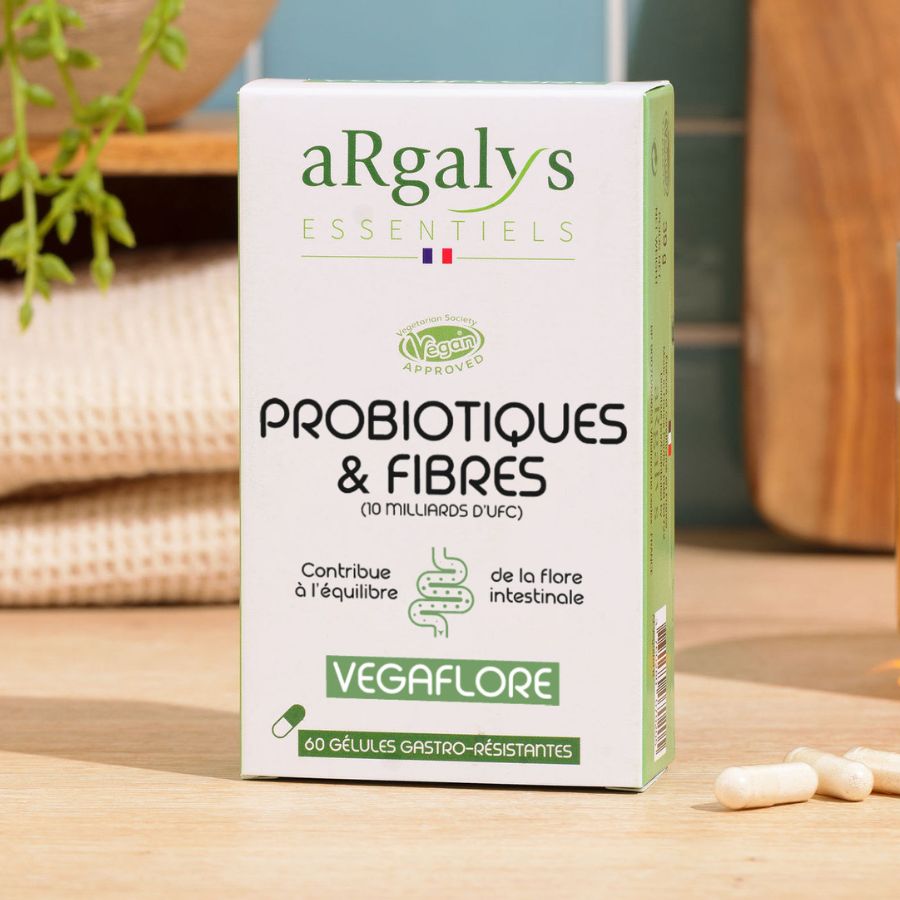New Vegaflore formula (Vegan Prebiotics and Probiotics) with 10 billion CFUs per capsule, made in France in a 100% recyclable pillbox and without endocrine disruptors.